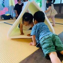お次はお待ちかねのマット運動。ゴロゴロしてみたり、しっかりつかまって動かしてみたり、トンネルくぐりしたりみんなとっても上手!!