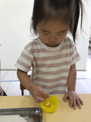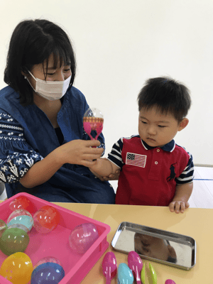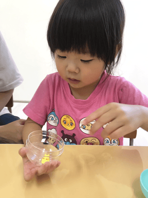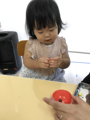 今日は1組ずつ製作していきます。待ってるお友だちはお外遊びやお部屋遊びで自由に過ごします。