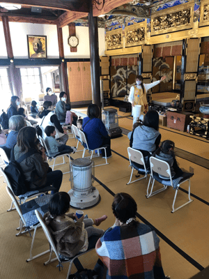帰りに清光寺の本堂で、おいしいぶどうジュースを飲みながらひと休み。