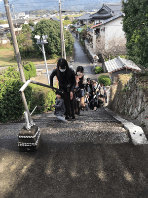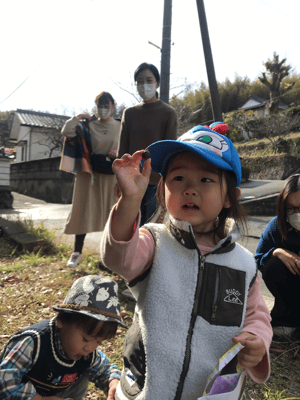 焼いている時間にお散歩へ。幼稚園の子どもたちもよく行くお散歩コースです。