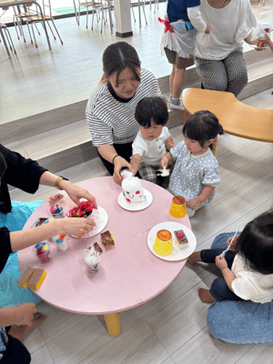 ケーキ作りの後は園児たちがケーキ屋さんごっこでぱんだくらぶのお友だちをおもてなししてくれました。