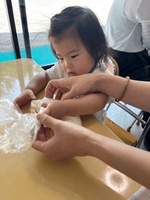 小さなお友だちは感覚遊びを楽しみます。