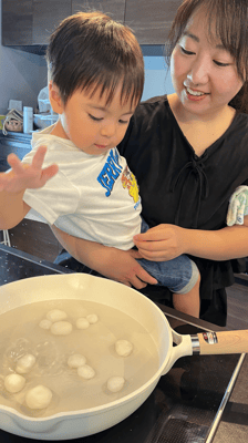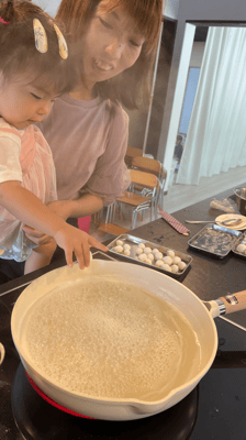 おだんごを茹でている時間、おだんごのお味見タイム!!