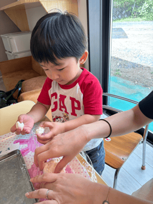 粘土遊びの延長で最後は美味しく頂けるおだんご作り。