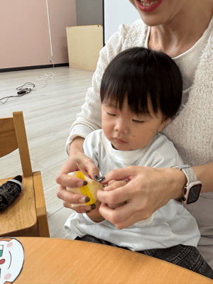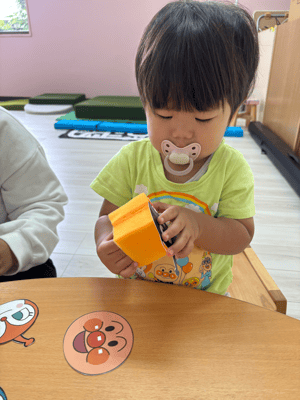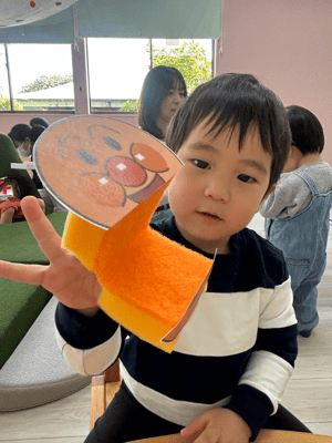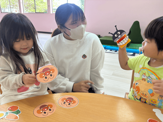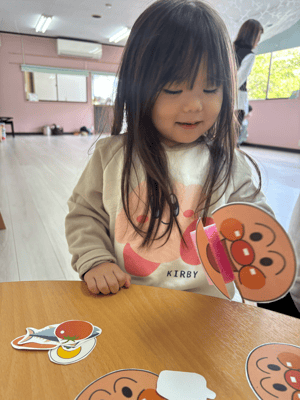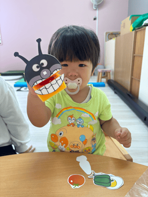 スポンジを使ったパクパク人形も作りましたよ!大人気キャラクターに食べ物をパクパク!上手に食べてましたね(*^_^*)