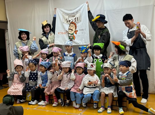 ピエトロさんにお越しいただき、食育教室をおこないました。ピエトロ食育テーマの【野菜キライをナオソ】をテーマに食べる事の大切さ、